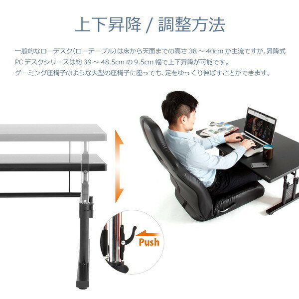 ローデスク ローテーブル 高さ調整 5段階調整 幅100cm/120cm 奥行45cm/60cm タップ受け パソコンデスク パソコンテーブル ゲーミング EZ1-DESKL016-026 |
