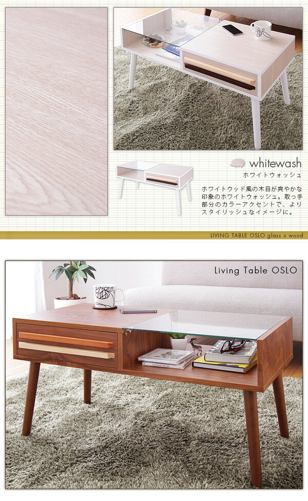 テーブル ウォールナット ガラス 木製 ローテーブル 引き出し 北欧 OSLO 【リビングテーブル オスロ】【送料無料】 |