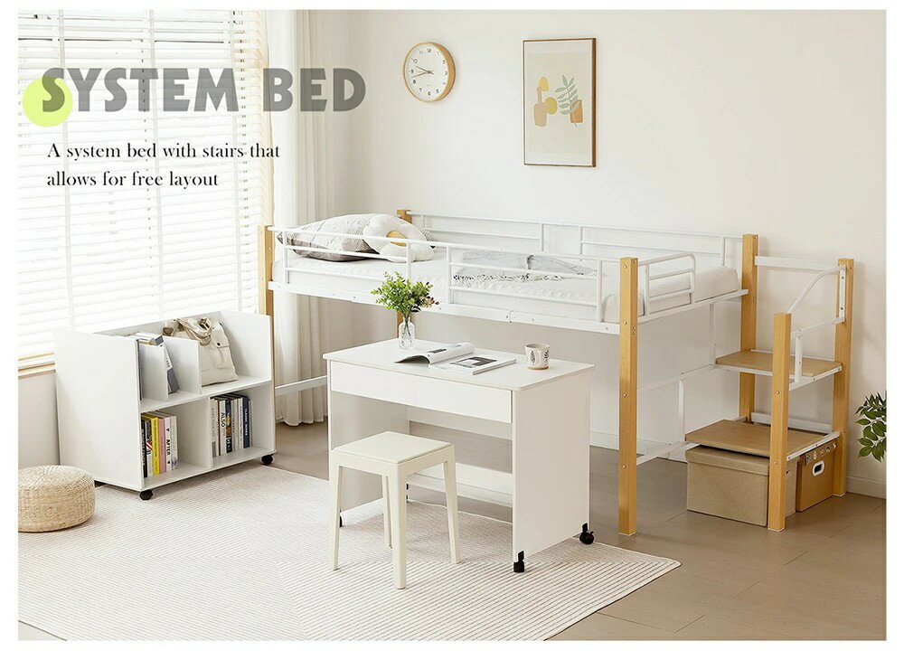 ロフトベッド システムベッド S 高さ120cm 階段付き デスク 本棚 机付き 木製 シングル ロータイプ 学習机 コンパクト 収納 大人 一人暮らし ホワイト ベッド ベッドフレーム 寝室 子供部屋 学生 アパート 省スペース おしゃれ 組み立て簡単 ギフト プレゼント 耐荷重 |