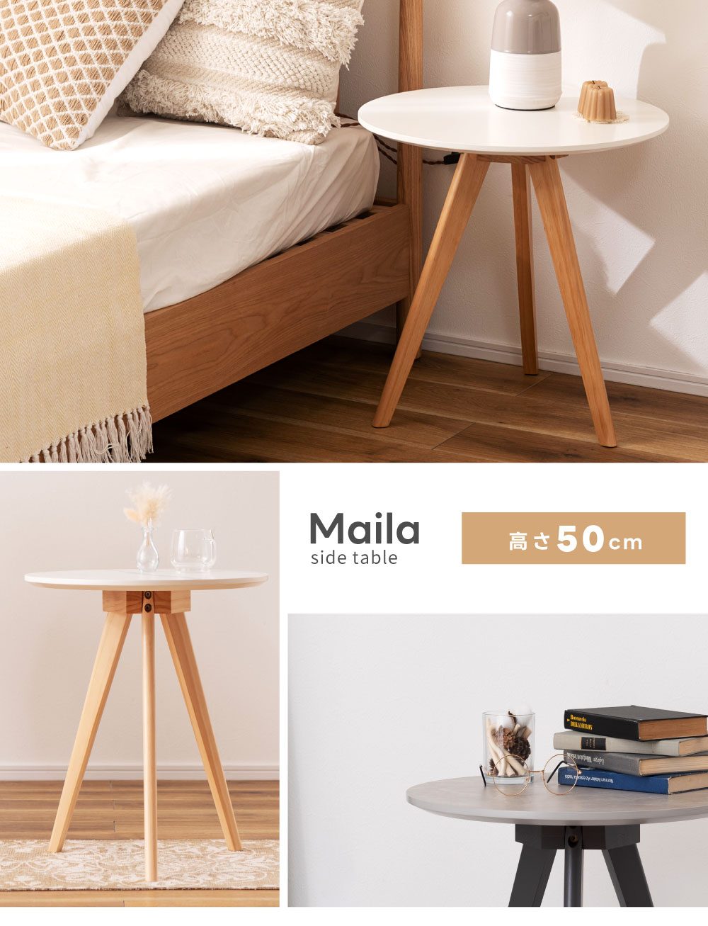 サイドテーブル 丸テーブル おしゃれ 丸型 円形 ラウンド 机 木製 天然木 シンプル 北欧 ナチュラル コンパクト スリム 軽量 高さ50cm 幅50cm 3本脚 ソファ ベッド ディスプレイ ホワイト 白 グレー 大理石調 ナイトテーブル 新生活 |