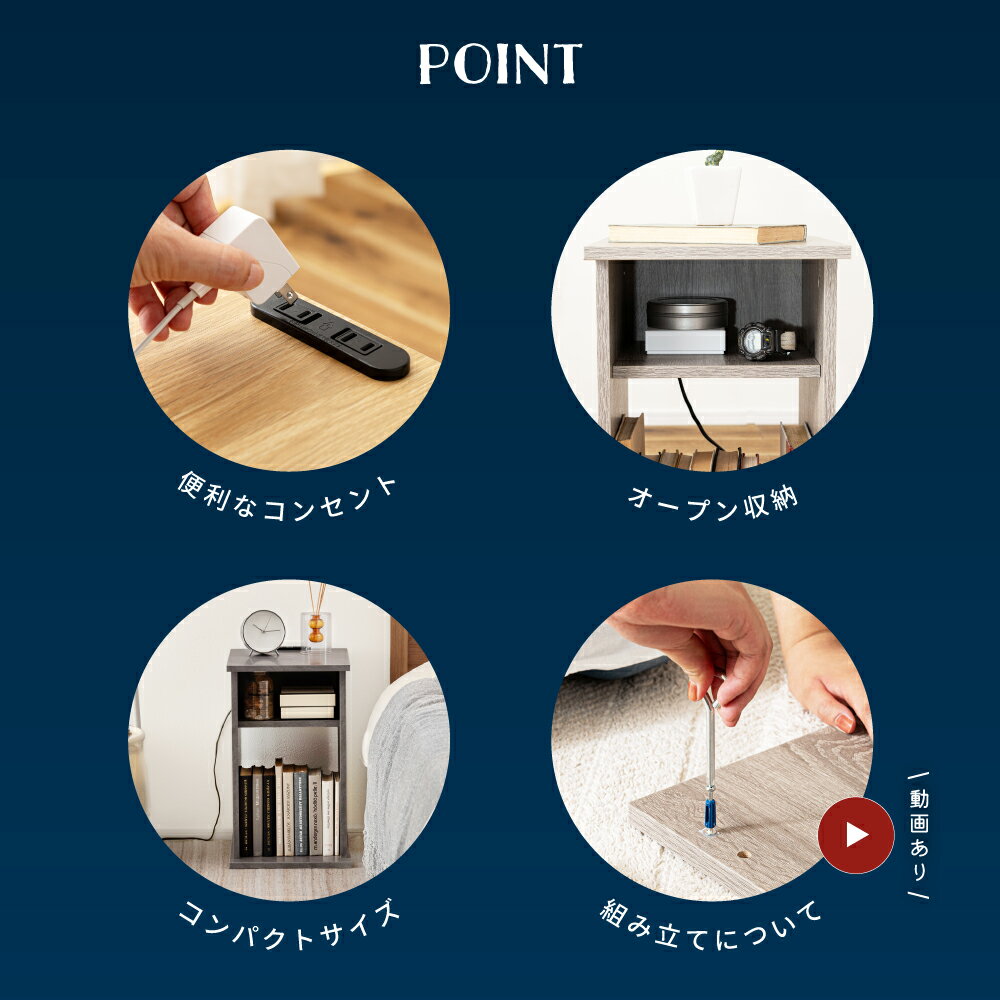 ナイトテーブル 2口コンセント サイドテーブル サイドチェスト 収納 コンセント 韓国インテリア 北欧 コンパクト 小さめ テーブル 木製 おしゃれ ベッドサイド リビング ナチュラル 幅30cm 高さ50cm ベーシック スリム 軽量 軽い 新生活 |