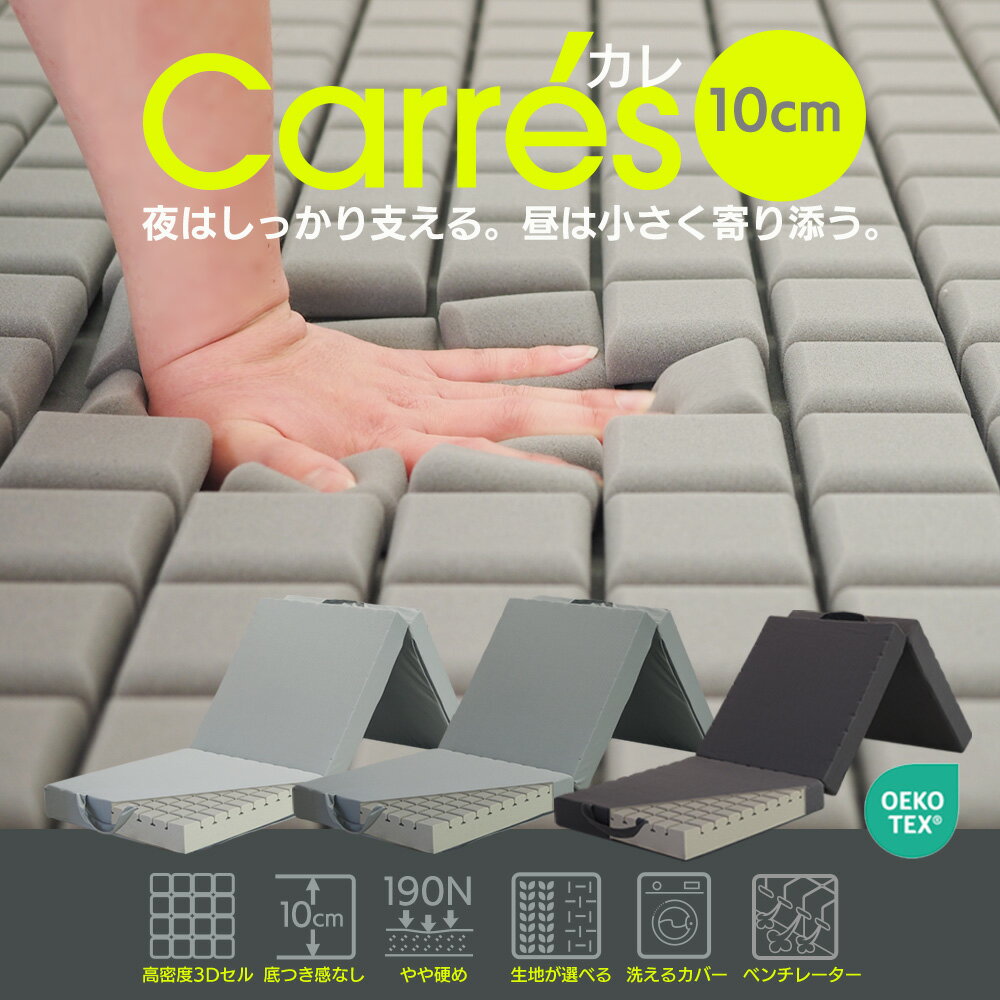 マットレス 三つ折り 折りたたみ 高反発マットレス ウレタン 3Dセル 敷布団 体圧分散 薄型 マットレス 60SS・70SS・80SS・セミシングル・シングル・セミダブル・ダブル Carres カレ マット アウトドア寝具 キャンプ 車中泊 |