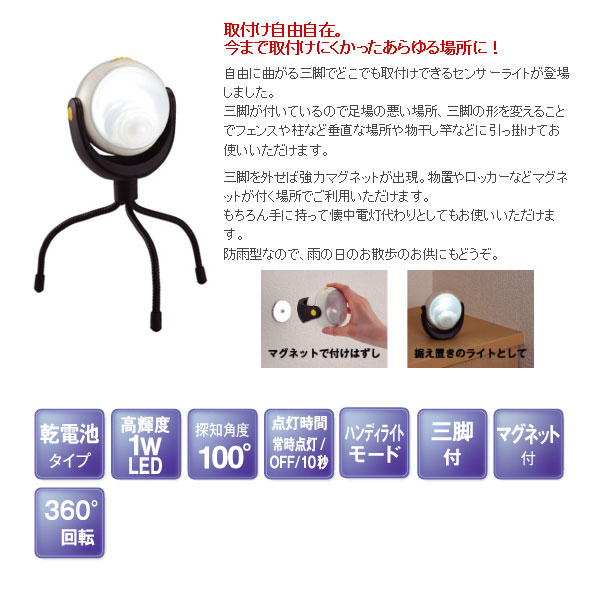 \取付自由自在/ムサシ LEDどこでもセンサーライト 電池式 屋外 防水 マグネット コンセント不要 防犯 RITEX ライテックス ASL-090 「送料無料」 |