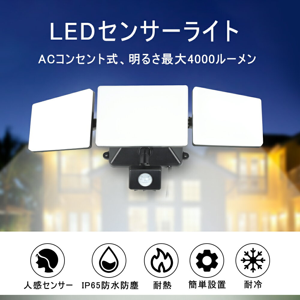 最新型LED センサーライト 屋外 3灯 35W 50W コンセント式 角度調整 壁掛け IP65防水防塵 防犯ライト 2モード 回転式 明るい 3200lm 高輝度 照明 器具 玄関 庭先 駐車場 ガレージ 入口 ベランダ 通路【3年保証】 |