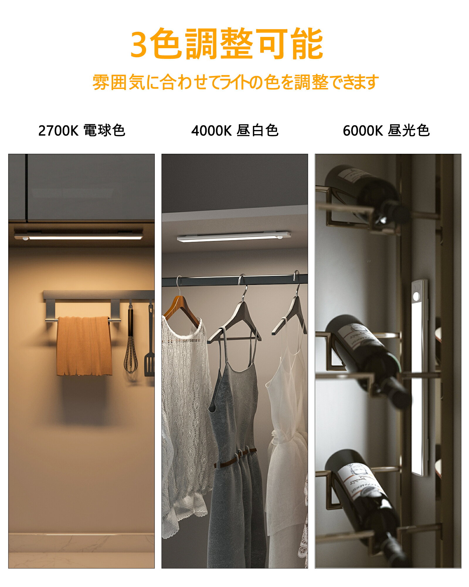 【在庫処分】センサーライト LED 人感 20cm*2本 1100mAh USB充電 3段階調色 バーライト 室内 センサー照明 9mm 超薄型 LEDセンサーライト 高感度 足元灯 常夜灯 屋内 磁石 玄関 キッチン 防災 PSE認証 翌日配送 |