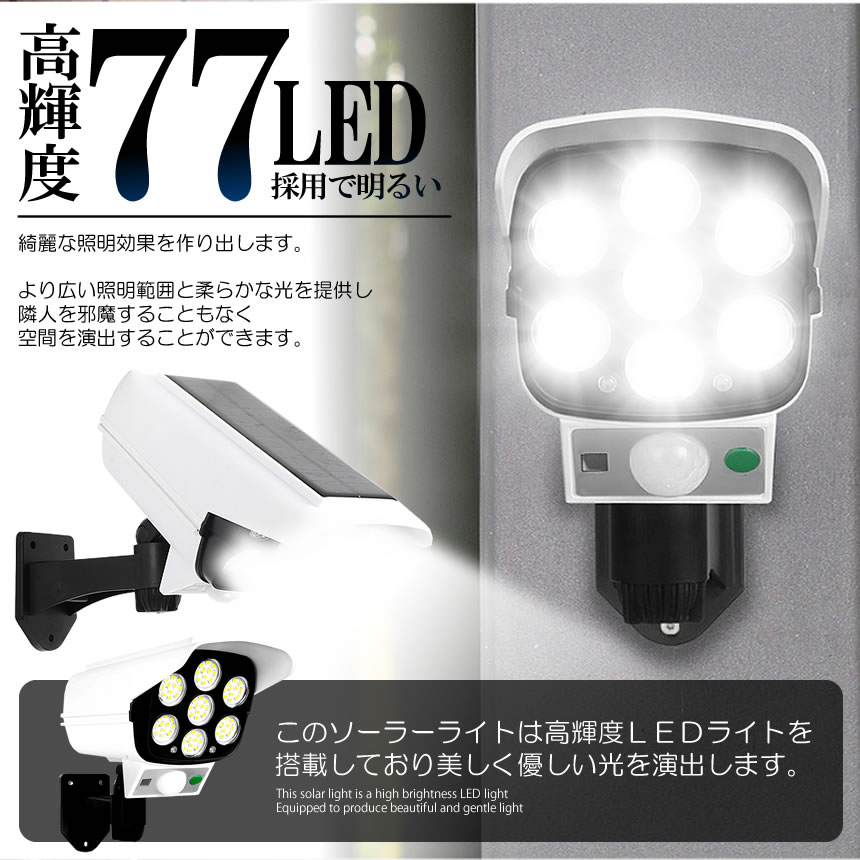 【送料無料】 5個セット ソーラーライト センサーライト 屋外 防犯ダミーカメラ 防犯カメラ風 ダミーカメラ風 77LED搭載 人感センサー搭載 ガーデンライト 自動点灯 高輝度 壁面 ウォール ウッドデッキ 庭 配線不要 77LESOLA |