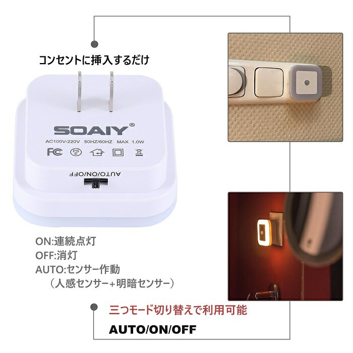 【 人感センサー 】【2個セット】SOAIY 三つモード点灯可 人感センサーライト センサーライト コンセント式 LEDライト 人感 明暗センサー搭載 電球色 昼光色 LEDライト 足元灯 フットライト 屋内 省エネ 補助灯 玄関 廊下 トイレ 寝室 キッチン ギフト 送料無料 |