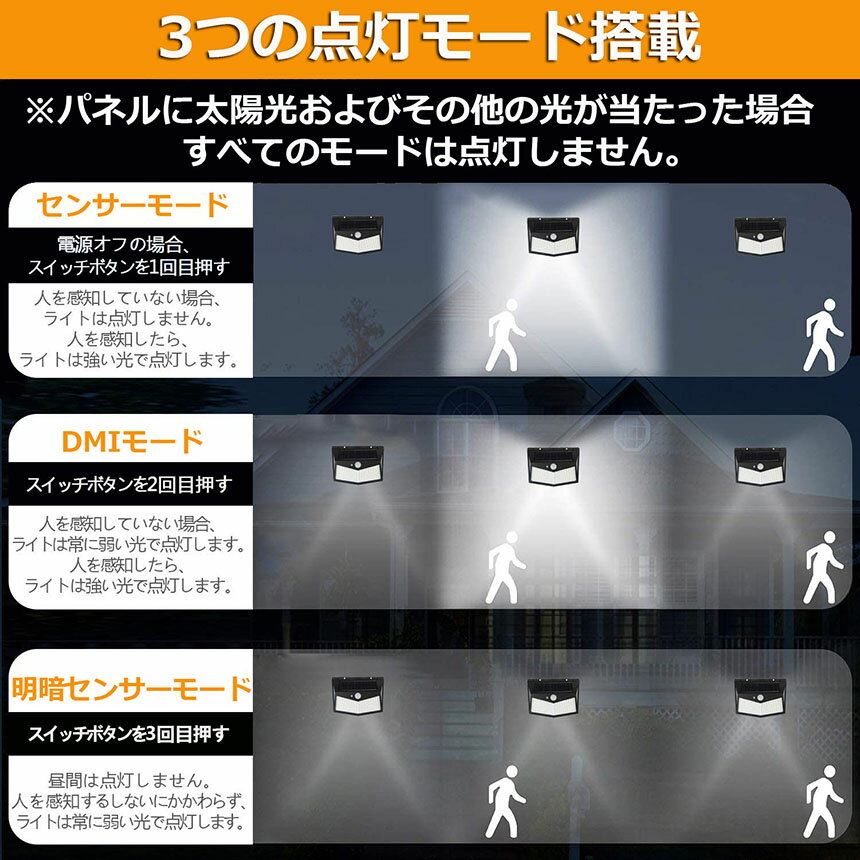 センサーライト ソーラーライト 212LED 4面発光 3つ知能モード 人感センサー 屋外照明 太陽光発電 省エネ 防水 防犯ライト 自動点灯/消灯 壁 庭 柵 ガレージ 玄関 駐車場 地震 停電 |