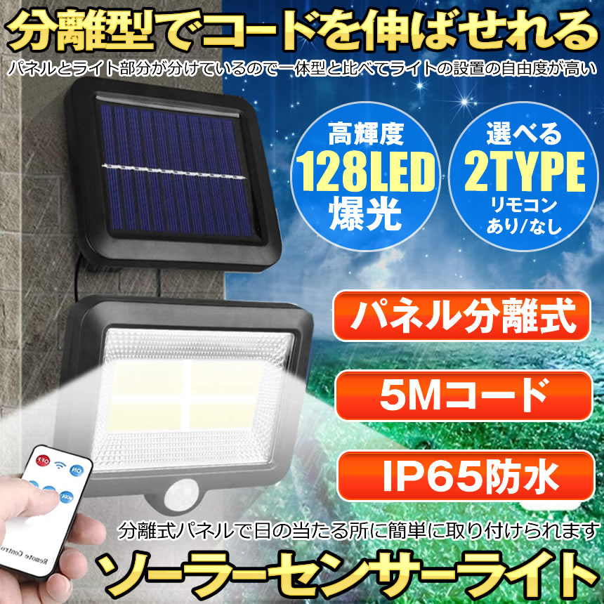 センサーライト ソーラーライト 128COB 2台セット屋外 COBチップ採用 3モード 120° 照明範囲 ソーラーライトモーションディテクター 5Mケーブル付き 防水 防犯ライト 自動点灯 屋外照明 庭 玄関 ガーデンライト 駐車場 停電緊急対策 防災ライト |