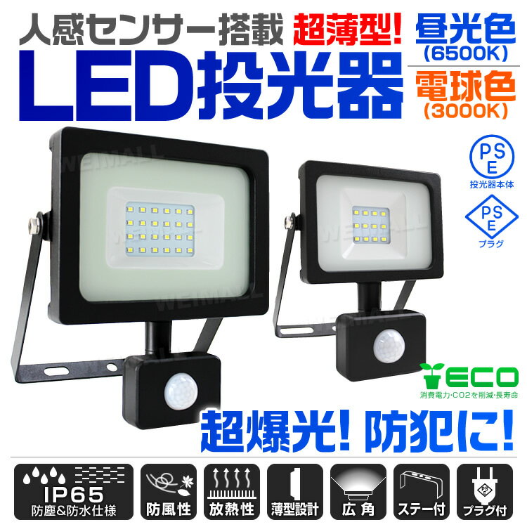 【期間限定クーポン配布中】LED 投光器 10W 100W相当 センサーライト LED投光器 人感センサー 昼光色 6500K 薄型 防犯用照明 ledライト 防犯 センサー 防犯灯 駐車場灯 自動点灯 広角120度 防水加工 3mコード付き 送料無料 |