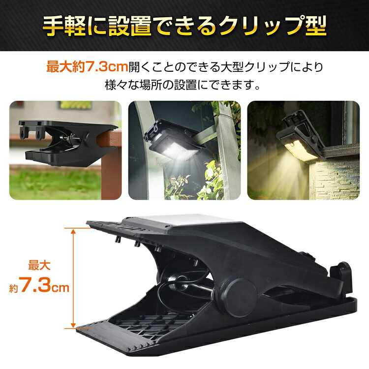 【11/15限定2個20%クーポン】【送料無料】 ソーラーライト クリップ式 屋外 ガーデンライト センサーライト 防水 防塵 IP65 LED 広範囲 人感センサー 自動点灯 自動充電 USB充電 リチウム電池 防犯 玄関 庭 照明 sl106 |