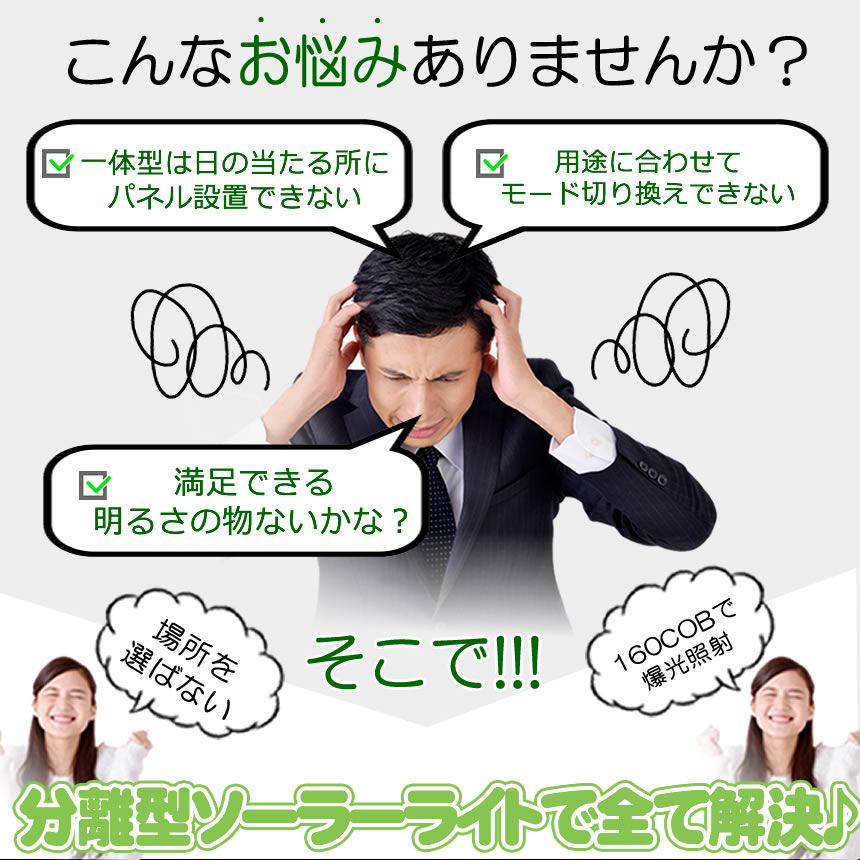 【分離式のソーラーパネル】 ソーラーライト 屋外 防水 リモコン センサーライト ガーデンライト ソーラーセンサーライト 分離型 分離 パネル 防犯ライト 防災ライト 人感センサーライト 160 COB LED LED3モード太陽光発電 360度角度自由調整 送料無料 |