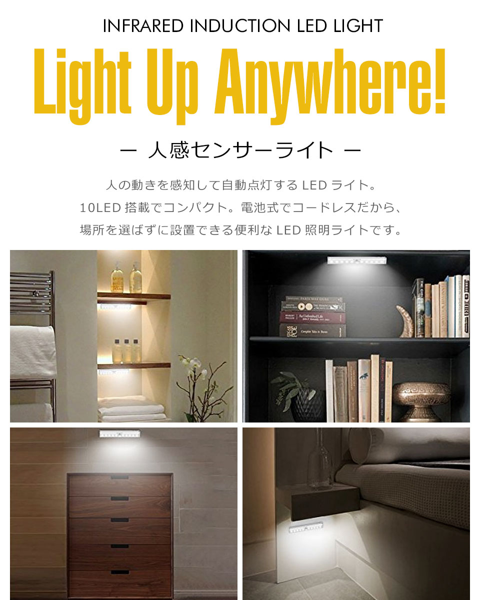 人感センサーライト 室内 玄関 電池 ナイトライト フットライト LED 照明 ライト マグネット 人感センサー 屋内 電球色 昼白色 小型 フットライト 足元灯 足元ライト 階段 玄関 廊下 クローゼット キッチン 台所 ガレージ 人感センサー ライト y4 |