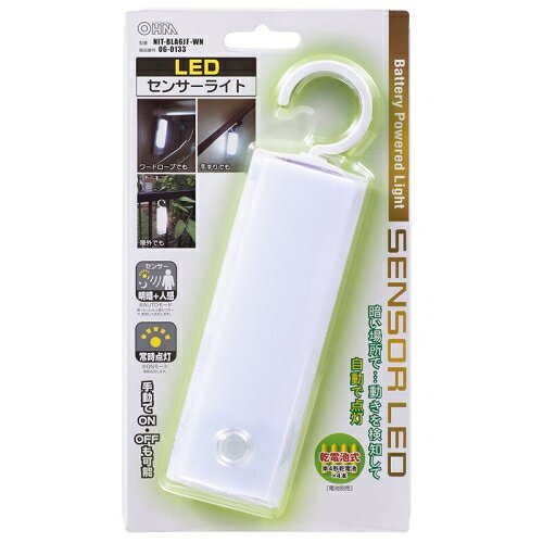 LEDセンサーライト ハンガー付 人感・明暗 NIT-BLA6JF-WN(1台)【OHM】 |
