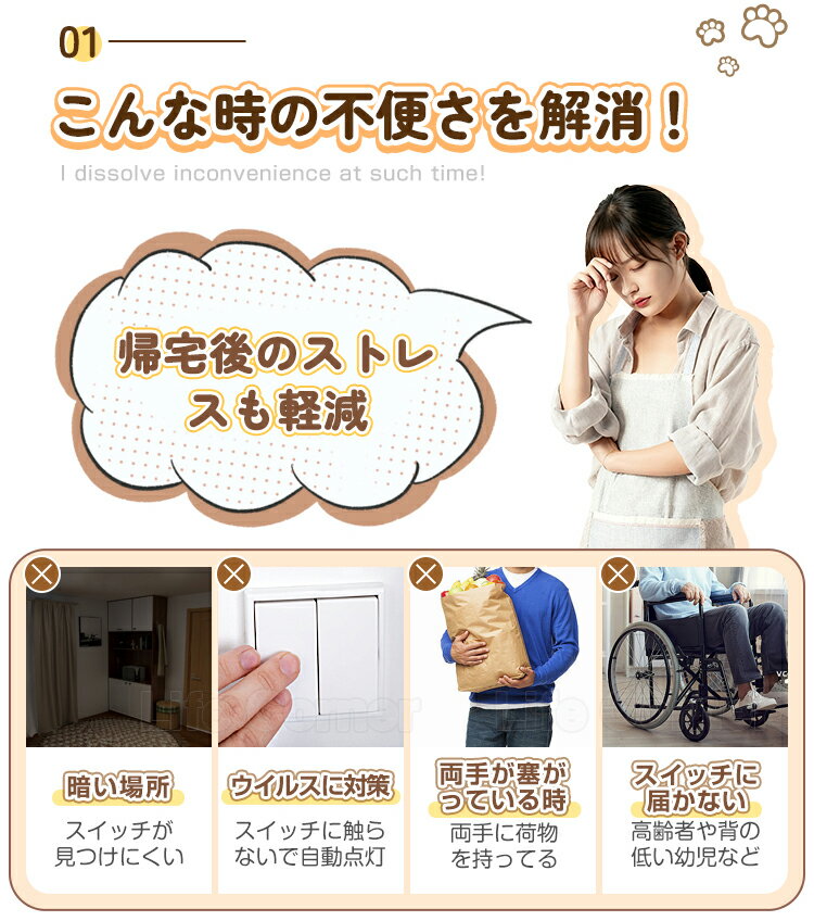 [50人に1人【半額】11/15(土)0時~] センサーライト 電池式 LED ライト 照明 足元 足元灯 自動 懐中電灯 マグネット 人感センサー 室内 ベッドライト スリープランプ サイドランプ ベッドサイド 昼白色 玄関 階段 寝室 廊下 クローゼット トイレ ledライト人感センサーライト |
