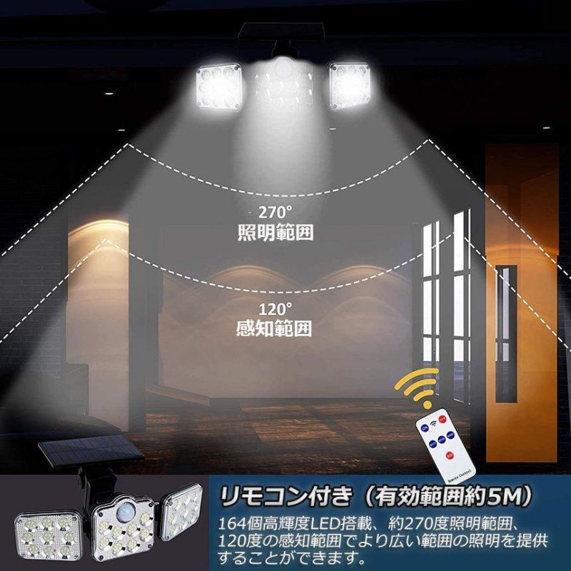 【2台セット】138LED 3灯式 ソーラーライト センサーライト 防犯ライト ガーデン 電気代不要 停電対策 人感センサーライト 屋外ソーラー ガーデンライト コスパ最高 屋外防水 3面発光 270°照明 800ルーメン 5Mコード付き 2200mAh リモコン付き |