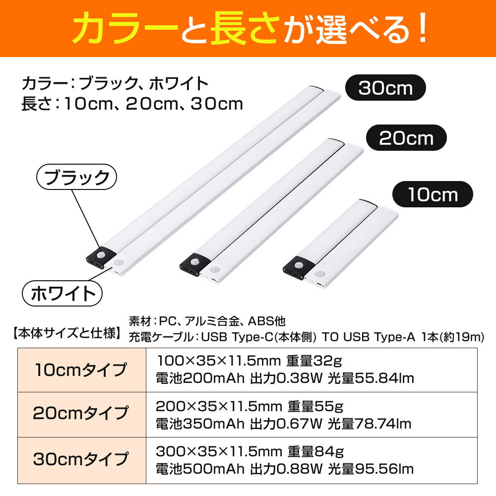 センサーライト LEDセンサーライト 人感センサーライト 室内 3段階調色 Type-C充電式 20cm 30cm マグネット 玄関 夜間ライト キッチン用ライト 超薄型 電球色 昼白色 足元灯 非常灯 常夜灯 |