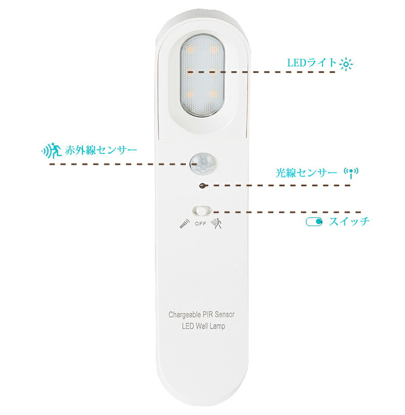 人感センサーライト LEDセンサーライト LEDライト USB充電 感知 廊下 室内 玄関 感知式 小型 充電式 防災グッズ |