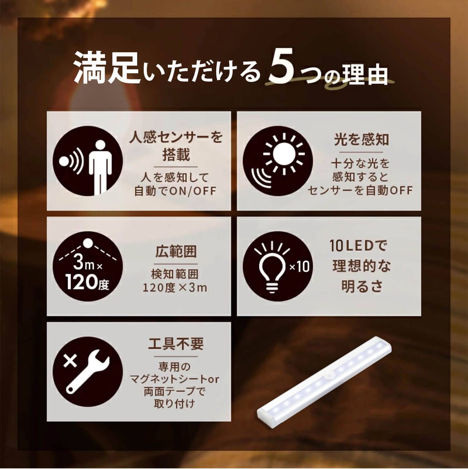 充電式 センサーライト 人感 室内用 屋内 マグネット着脱 3m/120°検知範囲 センサーライト 自動点灯 超薄型 10LED USB充電式 高感度 フットライト 足元灯 非常灯 磁石 玄関 廊下 クローゼット 間接照明 目に優しい 工事不要 配線不要 |