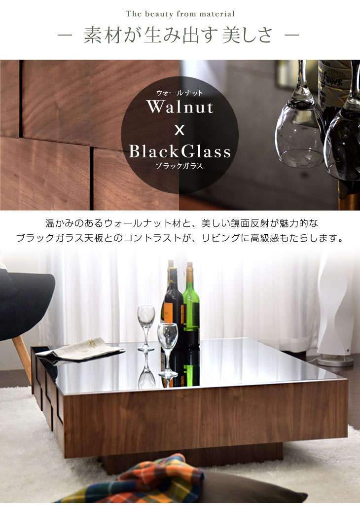 【国産/大川家具】日本製 ウォールナット 無垢材使用 センターテーブル 完成品 高級感 引き出し ガラス天板 木製 北欧 モダン テーブル リビングテーブル ローテーブル 正方形 無垢 ガラス ウォルナット 【超大型】【後払/時間指定NG】 |