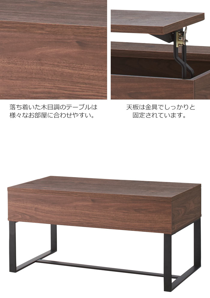 《東谷》2WAY センターテーブル 幅90 高さ調節 リフトアップテーブル 収納付き リフティング 昇降式 テーブル ローテーブル リビングテーブル 座卓 高さ調整 木製 スチール脚 おしゃれ モダン シンプル 一人暮らし コンパクト ブラウン so-851wal |