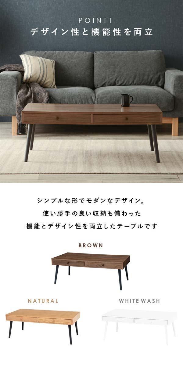 センターテーブル 引き出し おしゃれ 木製 幅100cm |