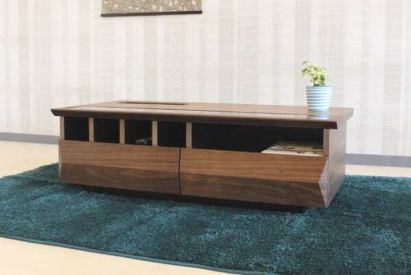 天然木ウォールナット無垢材使用のディスプレイ収納引出し付きセンターテーブル110cm国産・日本製エコ仕様デザイン性のあるカッコいい機能性も高いテーブル |