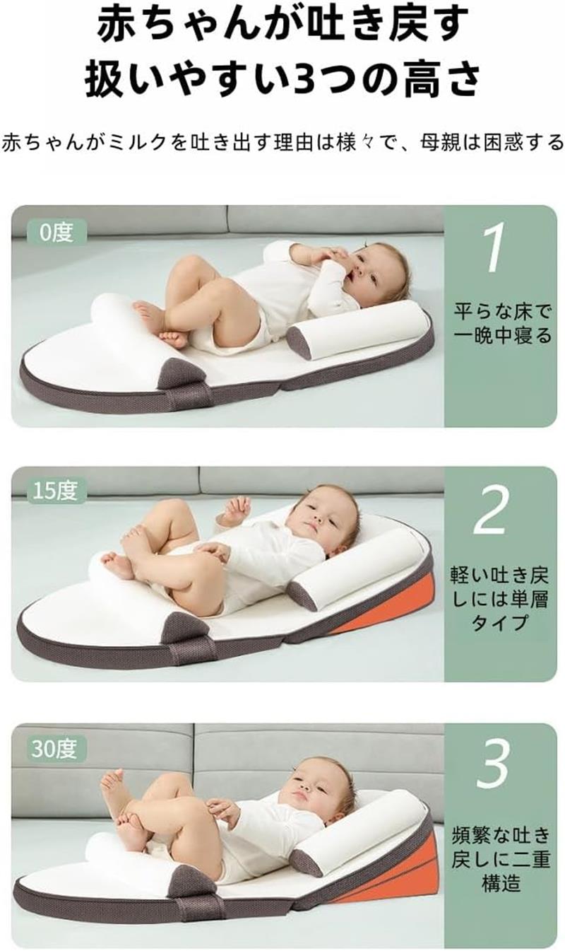 ベビー用吐き戻し防止ディープスリープスロープピロー、新生児用添い寝ベッド、収納簡単、軽量、取り外し可能、高さ調節可能、落下防止、出産祝い、背骨にフィット、圧力を解放 |