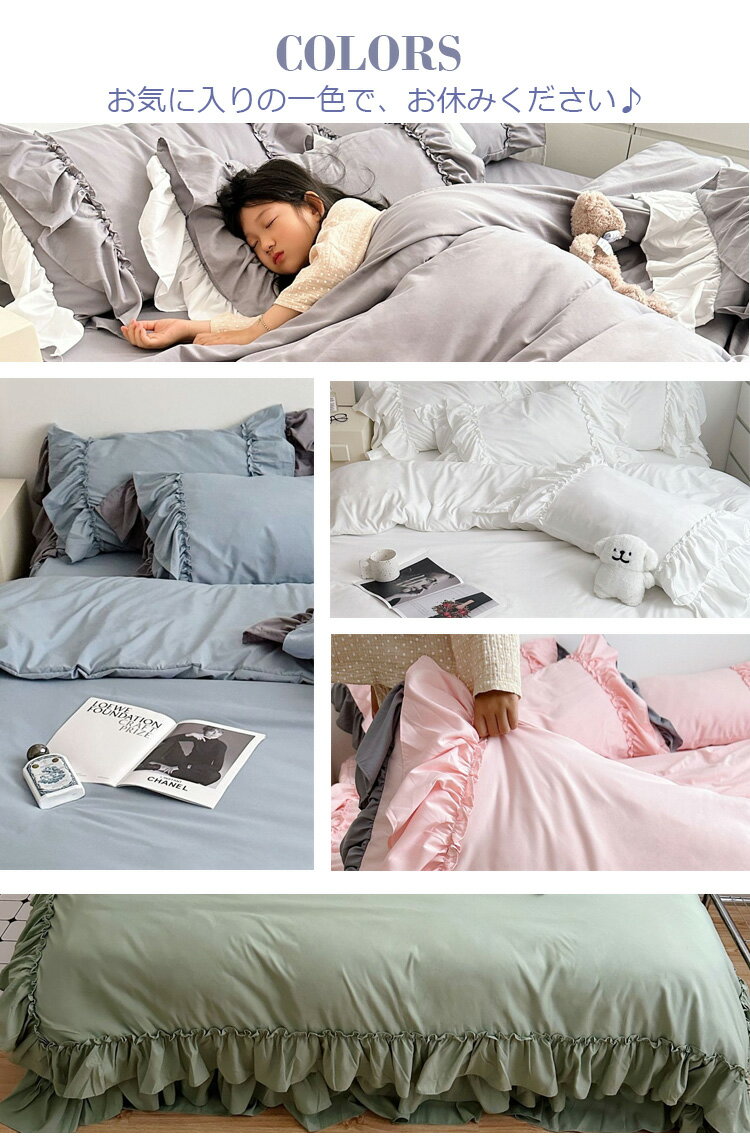 2024新作!【防ダニ/フリル/丸洗い】 フリルつき 布団カバー4点セット 布団カバー 布団カバーセット ベッドスカート 寝具カバー ボックスシーツ フラットシーツ 枕カバー マシンウォッシャブル 抗菌 保温 防臭 シングル セミダブル おしゃれ 柔らかい かわいい 無地 肌触り |