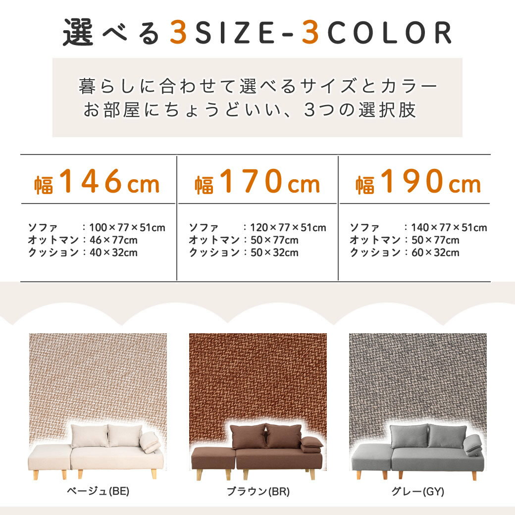 カウチソファ エルマー リクライング機能付きアーム オットマン付き クッション付き 幅146cm 幅170cm 幅190cm 2人掛け カウチ シェーズロング ソファ ファブリック デイベッド ソファベッド 肘掛け付き 片肘 ブラウン ベージュ グレー |