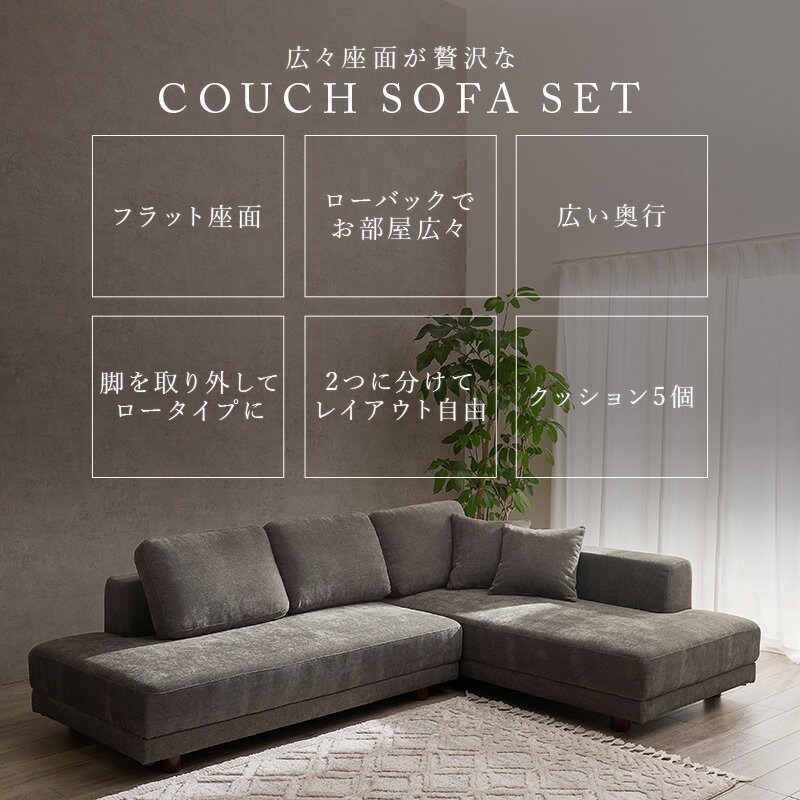【開梱設置付き】L字ソファ【Elma】エルマ(ソファ ソファー 3人掛け カウチソファ ファブリック ごろ寝ソファー コーナーソファー ロー アームレス 硬め ワイド おしゃれ 4人掛け カウチ リビング アイボリー グレー 白 sofa ソファベッド) |