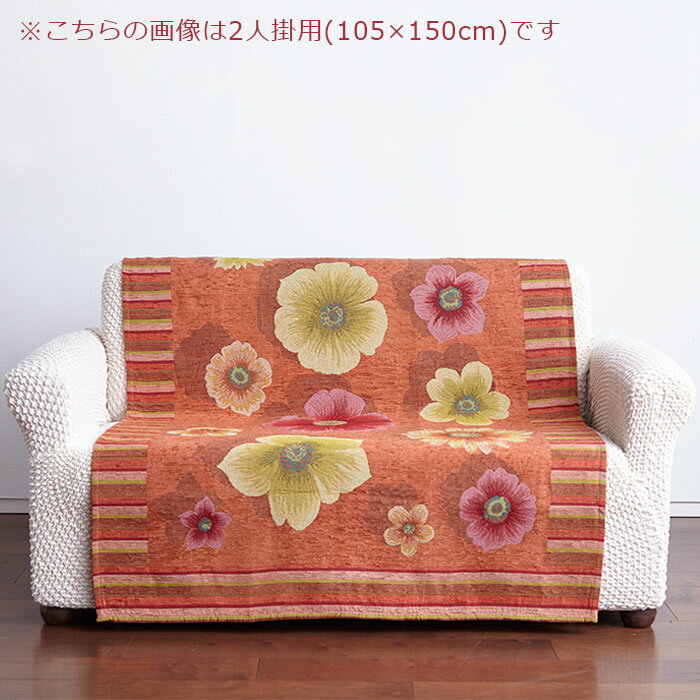 アネモネソファーカバー 3人掛け 【送料無料】 約155×150cm ソファカバー ジャガード織 中掛け 柔らかい リビング ベージュ オレンジ グリーン ブラウン シェニール糸 バンド無し 花柄 綿混 洗濯可 イタリア製 おしゃれ |