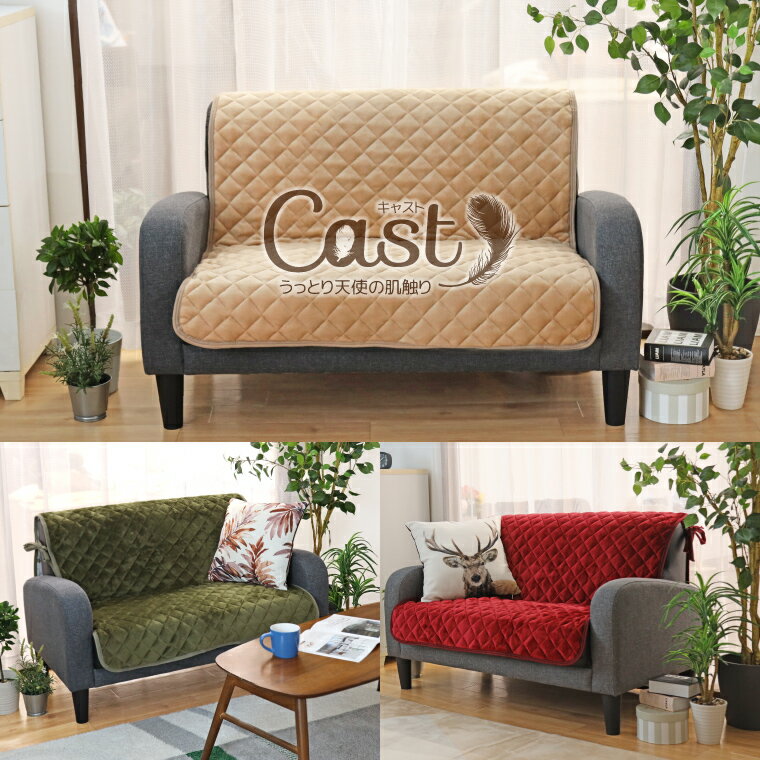【2枚組セット】ソファーカバー cast 約100×180cm 1人掛け用 洗える あったか 暖か 背もたれ ふわふわ シンプル 無地 キルト CAST キャスト |