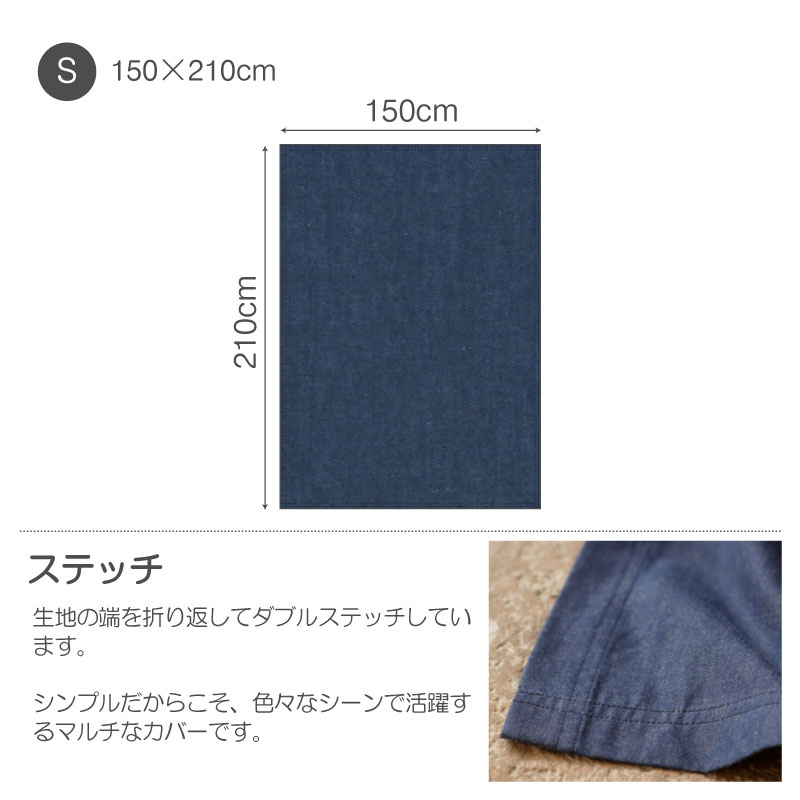 【Fab the Home】ライトデニム/ネイビー マルチカバー 150×210cm ソファカバー ベッドカバー等多用途に使えます |