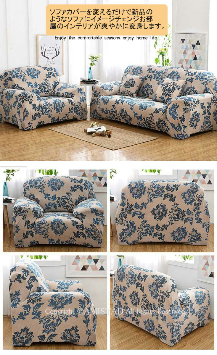 【クッションカバー贈り】ソファカバー(1人/2人/3人掛け用 L字型 肘掛/肘掛なし)花柄・植物柄 一体型ソファカバー 滑り止め 防塵用 ペット 爪とぎ傷の 保護 シーズン 対応 洗濯可 新生活 |