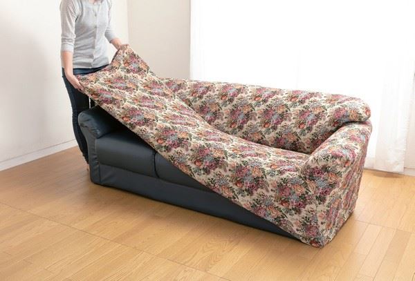 日本製 タテヨコ伸縮ソファカバー ブーケ柄 肘付き 3人掛用 |