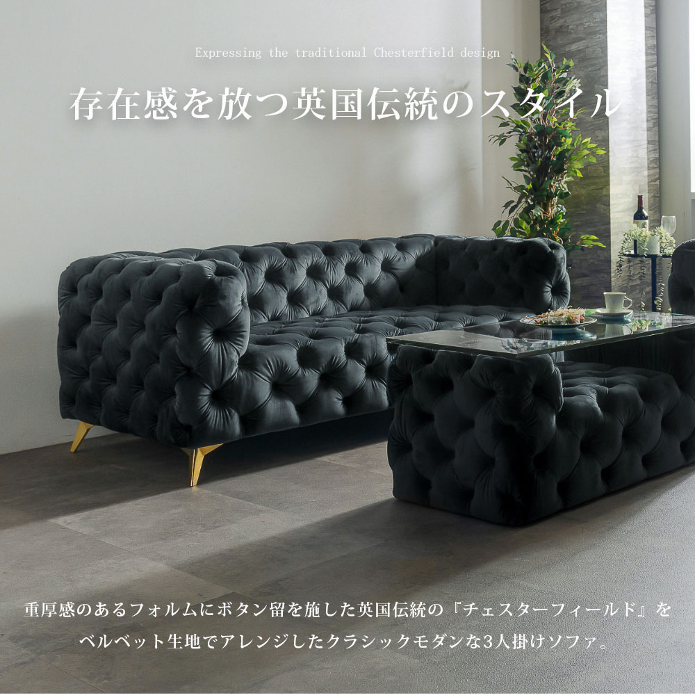 ソファ 3人掛け チェスターフィールド 三人掛け ベルベット生地 ソファー コンパクト 肘あり おしゃれ スチール脚 モダン 高級感 エレガント スタイリッシュ ボタンダウン タフティング もこもこ ソファ三人掛け 幅191 |