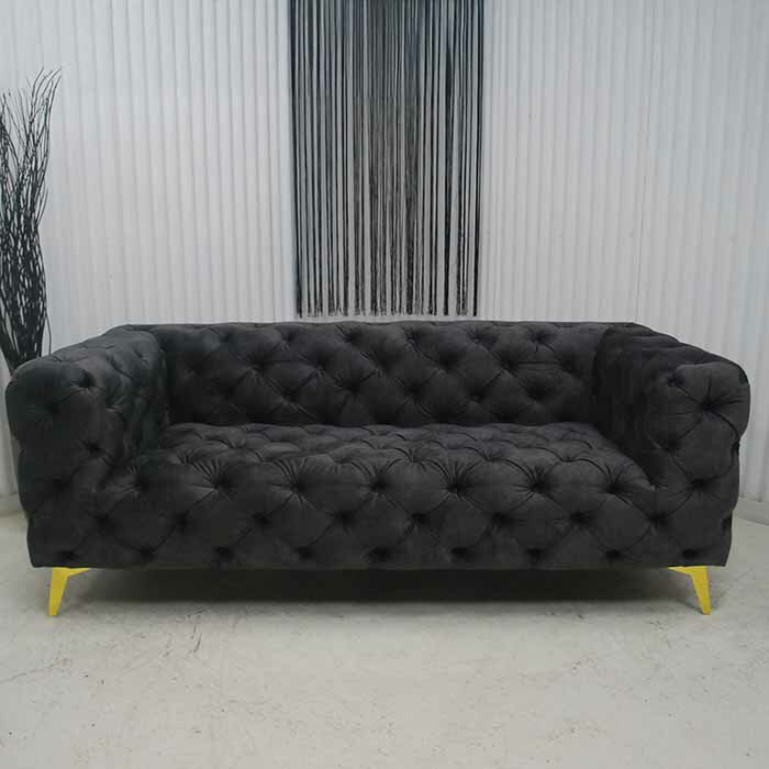 アウトレット 送料無料 未使用 チェスターフィールド 3Pソファー3人掛けソファー ダークグレイ ゴールド脚 モコモコ 布製 トリプルソファー ミキインテリアオリジナル |