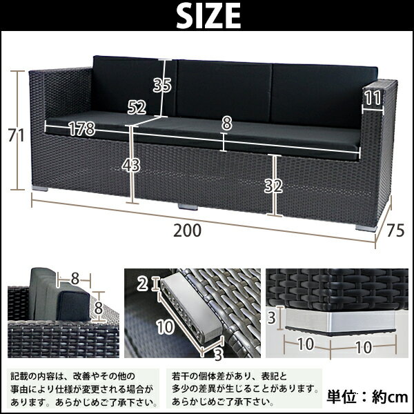送料無料 新品 人工ラタンソファ 3人掛け 黒 トリプルソファ 3P 籐 家具 ファニチャー インテリア おしゃれ リビング sofa ソファー 椅子 チェア 南国 アジアン バリ風 リゾート ホテル ベランダ バルコニー テラス 庭 ガーデン ラタンチェア 3seater ブラック rattan643p |