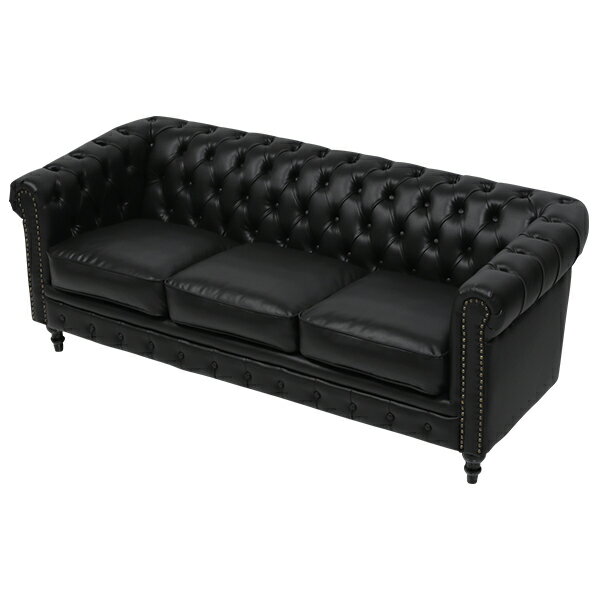 輸入家具 チェスターフィールド ソファ 3人掛け 三人掛け アンティーク コンパクト チェスターフィールド ソファー ヴィンテージ レザー 本革調 チェスターフィールドソファ ブラック 黒色 ダークカラー チェスターフィールド ソファ チェスター ボタン VC3P32K |