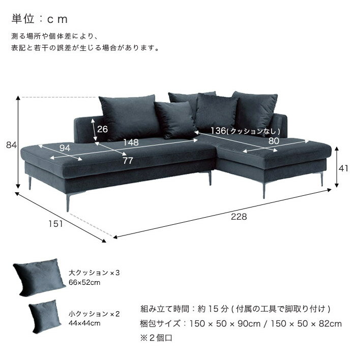 【期間限定P5倍】【選べる開梱設置サービス】 カウチソファー カウチソファ 幅228cm 3人掛け コーナーソファー 3人掛け L字ソファー 応接ソファー 3人用 三人掛け スチール脚 鉄脚 ファブリック 布地 おしゃれ 北欧 シンプル モダン グレー ブラック 黒 ツートン |