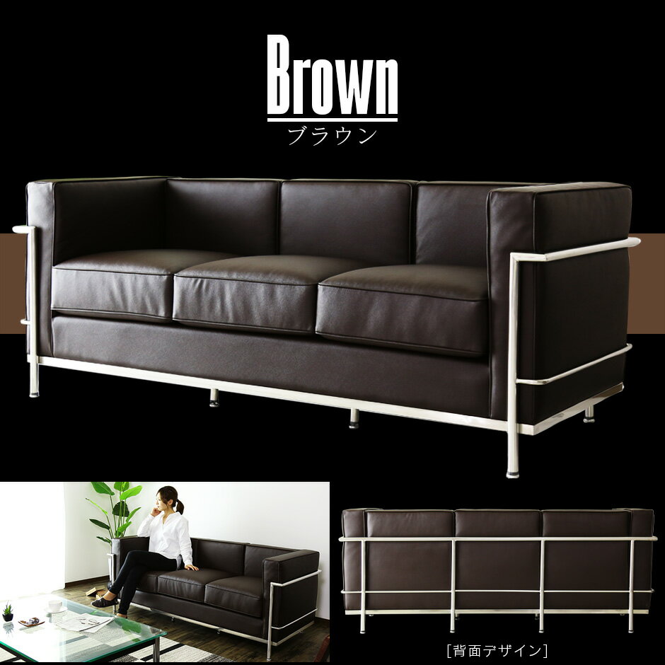 デザイナーズソファ 三人掛けソファ ル・コルビジュ リプロダクト LC2 ソファ ソファー 3p 3人用 ブラック ホワイト ブラウン ポケットコイル オフィス ロビー 応接 会議室 幅180 奥行70 高さ70 北欧 モダン おしゃれ デザイン レザー コンパクト スリム 肘掛 LC2-3P ドリス |
