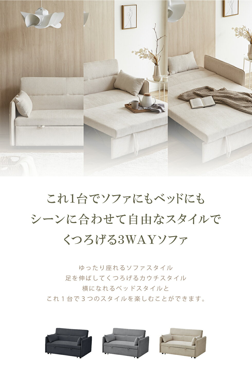 【B.F.限定10%OFFクーポン配布中!!】ソファ ソファー ソファベッド 2人掛け 3人掛け 北欧 ファブリック 3WAY コンパクト 一人暮らし 収納式 伸長式 二人掛け 三人掛け ソファーベッド おしゃれ ベージュ グレー カウチソファー モダン 2P 3P 送料無料 |