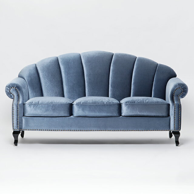 アンティーク ソファ ソファー 3人掛け 3人掛けソファ 3人 トリプルソファ アンティーク調 ロマンチック 姫系ソファ シェルソファ 貝殻 ブルーベルベット 布地 おしゃれ リッチ 猫脚 コンパクト ロココ Shellfa シェルファ VS3F92K |