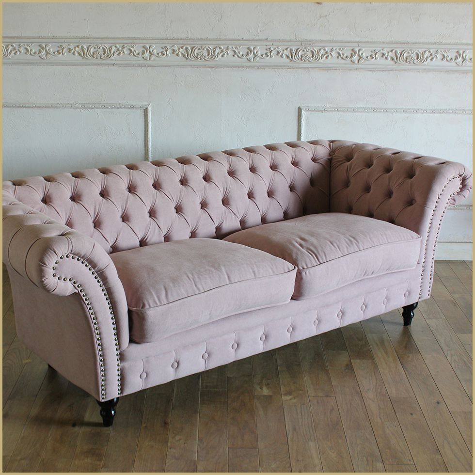 姫系 ソファー かわいい チェスターフィールド ソファ 3人掛け 三人掛け アンティーク ソファー ピンク ヨーロッパ ヨーロピアン ヴィンテージ 輸入家具 レトロ モダン コンパクト|三人がけ ヴィンセント ソファー 3人用 三人用 カフェ 待合室 新品 リプロ E 187*82*66 |