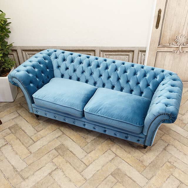 輸入家具 おしゃれ ソファ 3人掛け ソファー ヴィンセント チェスターフィールド ソファ 三人掛け トリプルソファ レトロ ヴィンテージ ミッドセンチュリー ビンテージ 高級 ソファー 美容室 エステサロン ターコイズブルー ベルベット VJ3F251K |