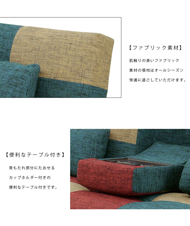 \全商品に使える11%offクーポン!!/ リクライニングソファ 3人掛け ソファベッド カップホルダー付き 脚取り外し ローソファ おしゃれ モダン ベッド ソファ テーブル付き 幅180 sofa 3P ファブリック パッチワーク風 高級 ブルー イエロー グリーン |