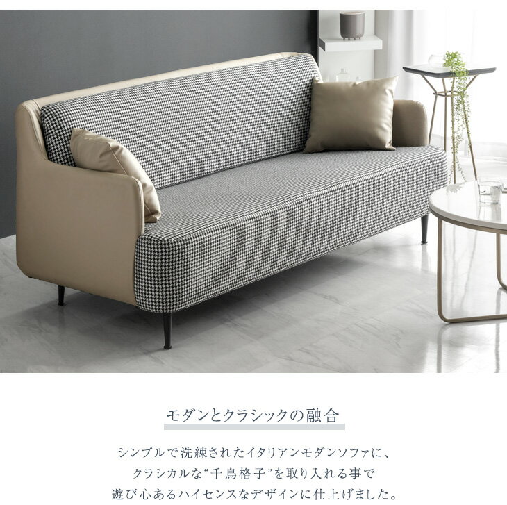 【PUレザー×千鳥格子】 イタリアンモダン 千鳥柄 3P ソファー ファブリック & レザー 調 ソファ sofa 3Pソファ 3Pソファー 3人掛け 3人掛 3人 モダン 布地 ベージュ ブラック オレンジ 【超大型】【後払/時間指定NG】 |