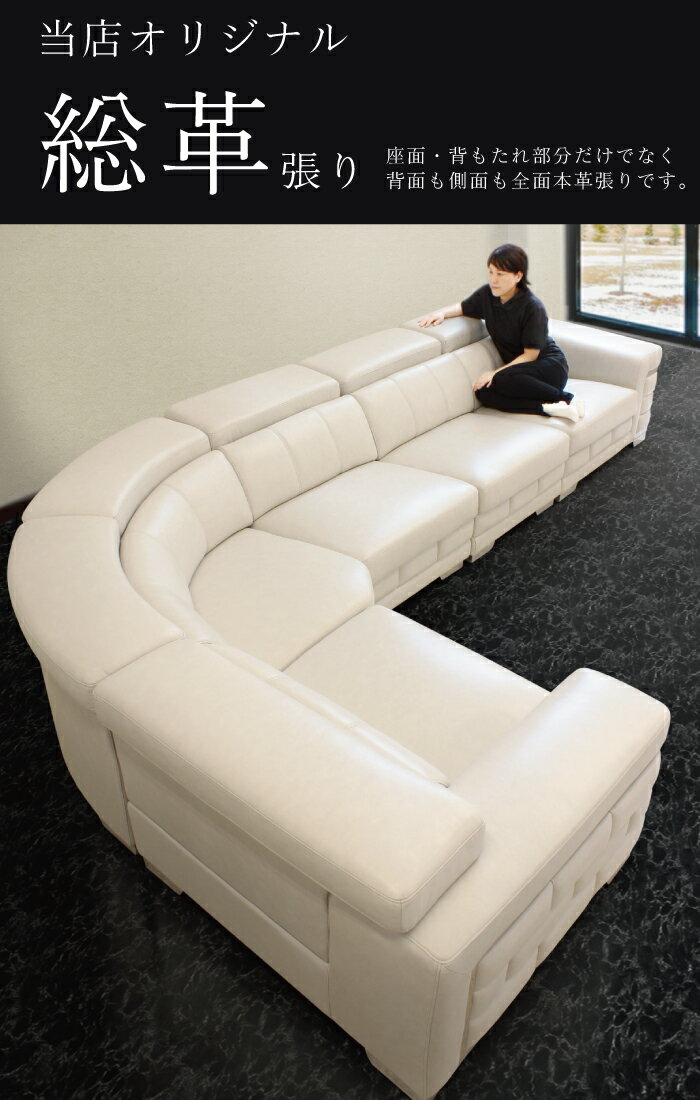 コーナーソファー 5点セット 総革張り イタリア製レザー ヘッドリクライニング 5人掛けソファ 応接ソファ イタリアンレザー コーナーソファセット L字型 L字 応接ソファセット ホワイト系 アージェント シンブラック カラーオーダー |
