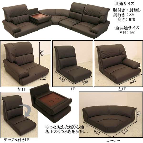 ロータイプコーナーソファ 5点セット 選べる3色 テーブル付き 上質ソフトレザーでなめらかな肌触り スタイリッシュで大人の雰囲気のソファセット フロアソファ sk05 |